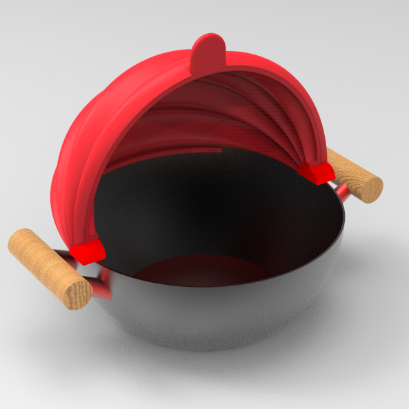 I did some mockups to test out how I could manufacture the cover for the wok. After researching for a surprisingly long time, I came upon an origami technique that fit with my design approach.